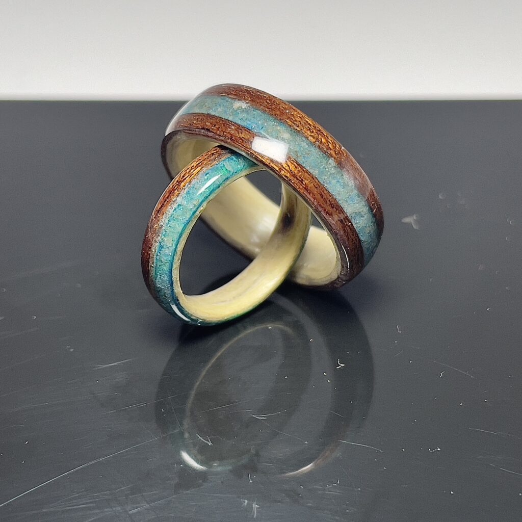 Deze collectie leent zich uitstekend voor speciale ringen. Denk aan houten trouwringen of verlovingsringen. Deze ringen hebben de basis van hout maar zijn ingelegd met edelstenen en andere mooie materialen.