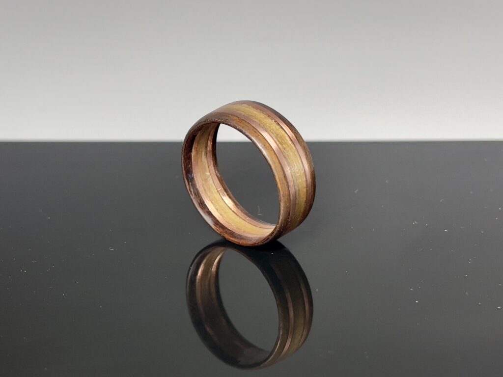 Deze houten ringen zijn een samensmelting van meerdere houtsoorten. In de natuur heet het een symbiose.