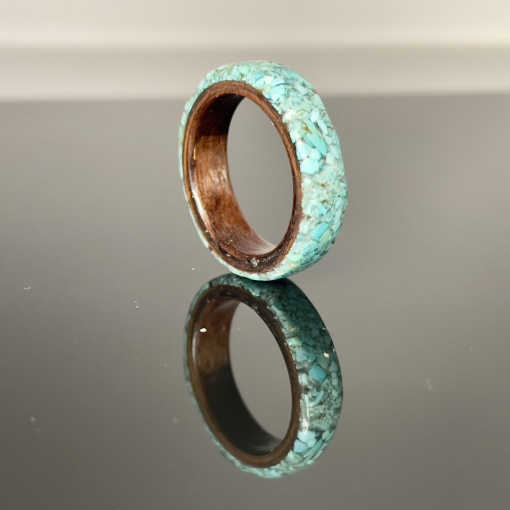 Deze collectie leent zich uitstekend voor speciale ringen. Denk aan houten trouwringen of verlovingsringen. Deze ringen hebben de basis van hout maar zijn ingelegd met edelstenen en andere mooie materialen.